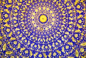 青いタイルは、高校の歴史で習うティムール朝時代に建てられたモスクや霊廟等に用いられ、濃淡様々な青色が鮮やかな輝きを放っています。