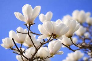 ハクモクレンは、庭木として時々、見かける花木ですが、春早く周りの彩りの少ない景色の中、葉が、まだ、生え揃わない枝先に白い大きな花をつけることから「迎春」という別名があるようです。
