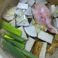 お水と一片の昆布をいれたお鍋を一晩ねかせたら、火にかけお酒も加えて一煮立ちさせます。中火にしてお塩を適量まぜたら柚子皮と具材を加えて蓋をして完成を待ちます。