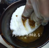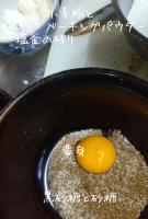 黒砂糖を細かく砕いて篩にかけ、お砂糖を混ぜたら再び篩にかけます。黄身を入れたら混ぜ、塩釜の残りを入れたら再び混ぜます。塩風味にしたいのであって、しょっぱい塩味にする訳ではないので、量は限度を越えないように。