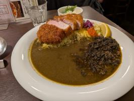 カレーは、鯛と鶏の和出汁にスリランカ産のスパイスを自家調合したオリジナルカレー。